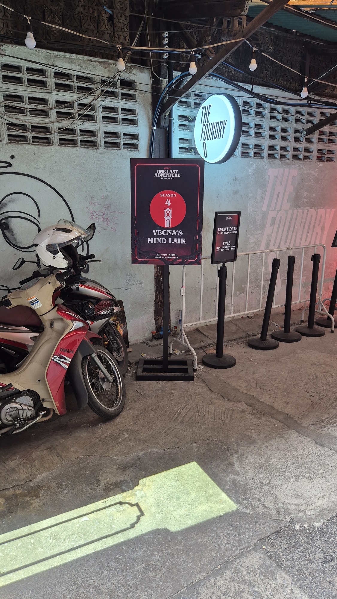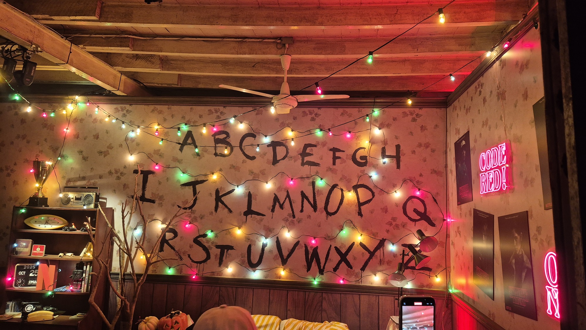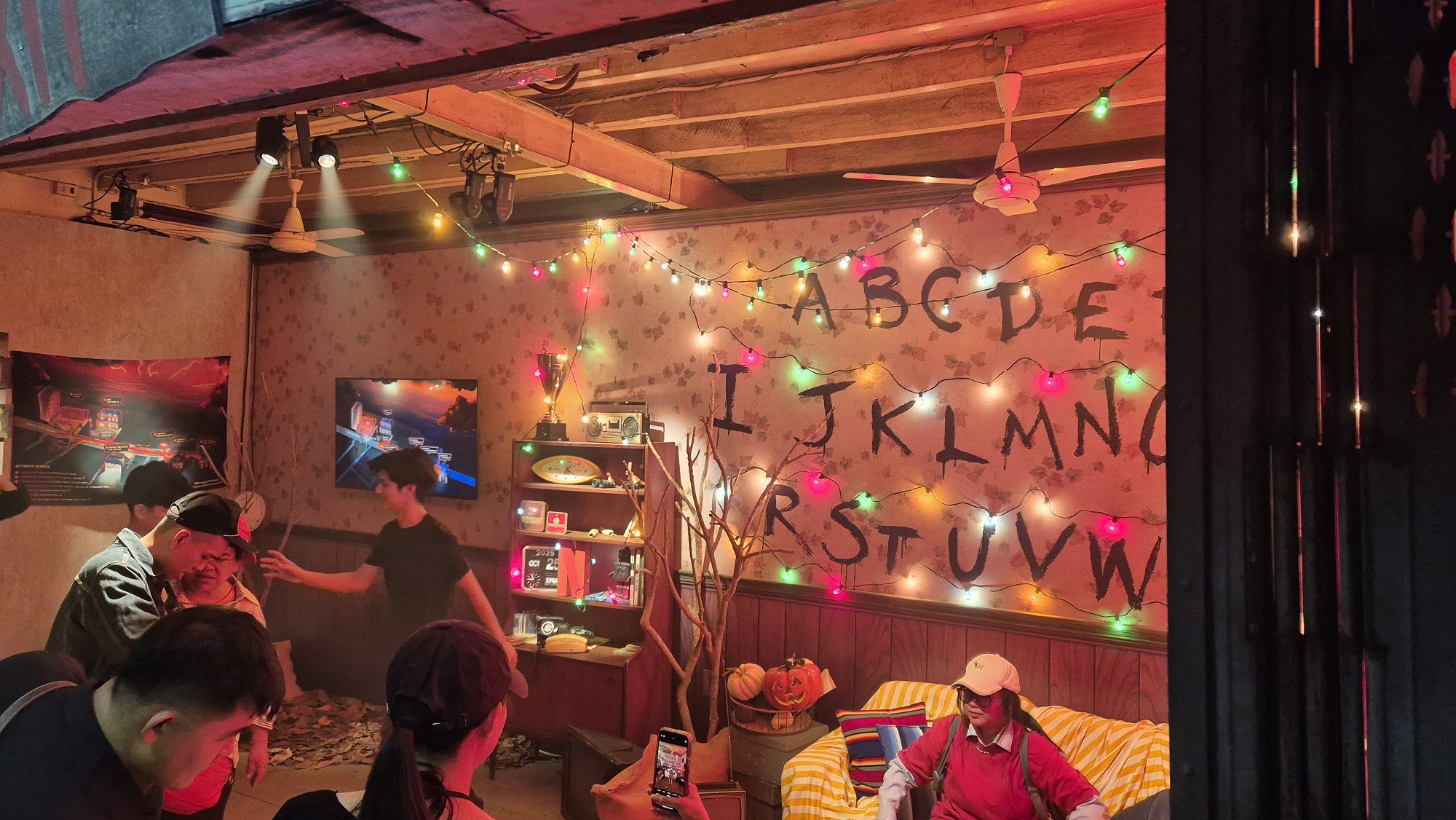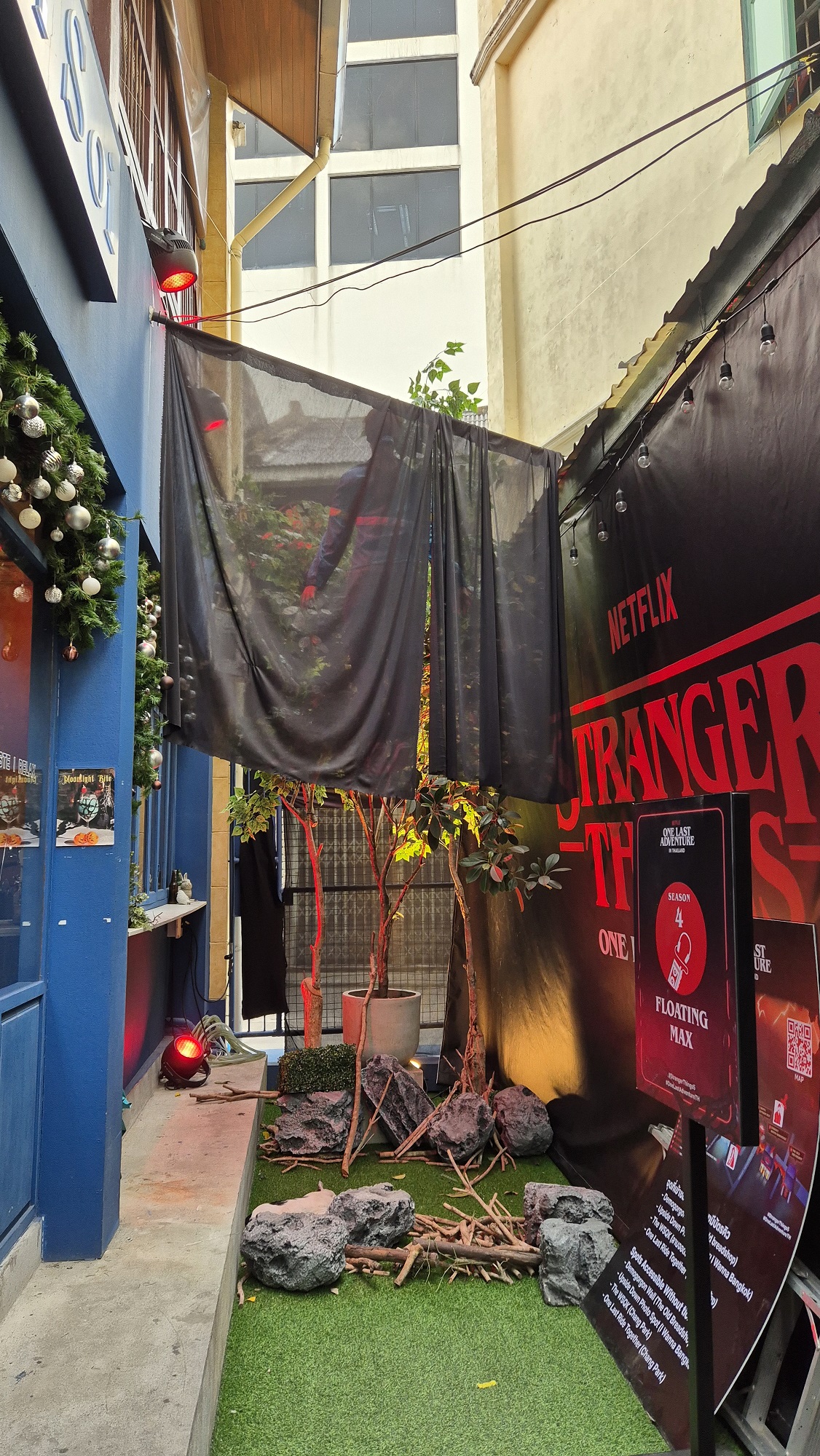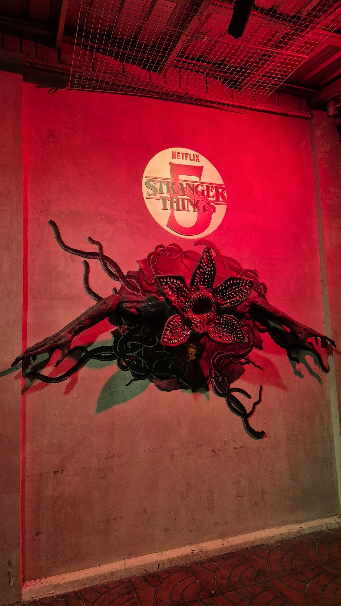 Следващите три точки бяха отворени само за хора с билети и не успях да вляза в тях. Те включваха сладоледаджийницата Nuury Chestnut Ice Cream Shop, която е била превърната в The Palace Arcade and Starcourt Mall’s Scoops Ahoy и явно се е продавал сладолед Stranger Things. След това беше бар The Foundry O, което представя „Vecna‘s Mind Lair“, а след него е кафенето Sit in Soi, където висеше реещата се във въздуха Макс.