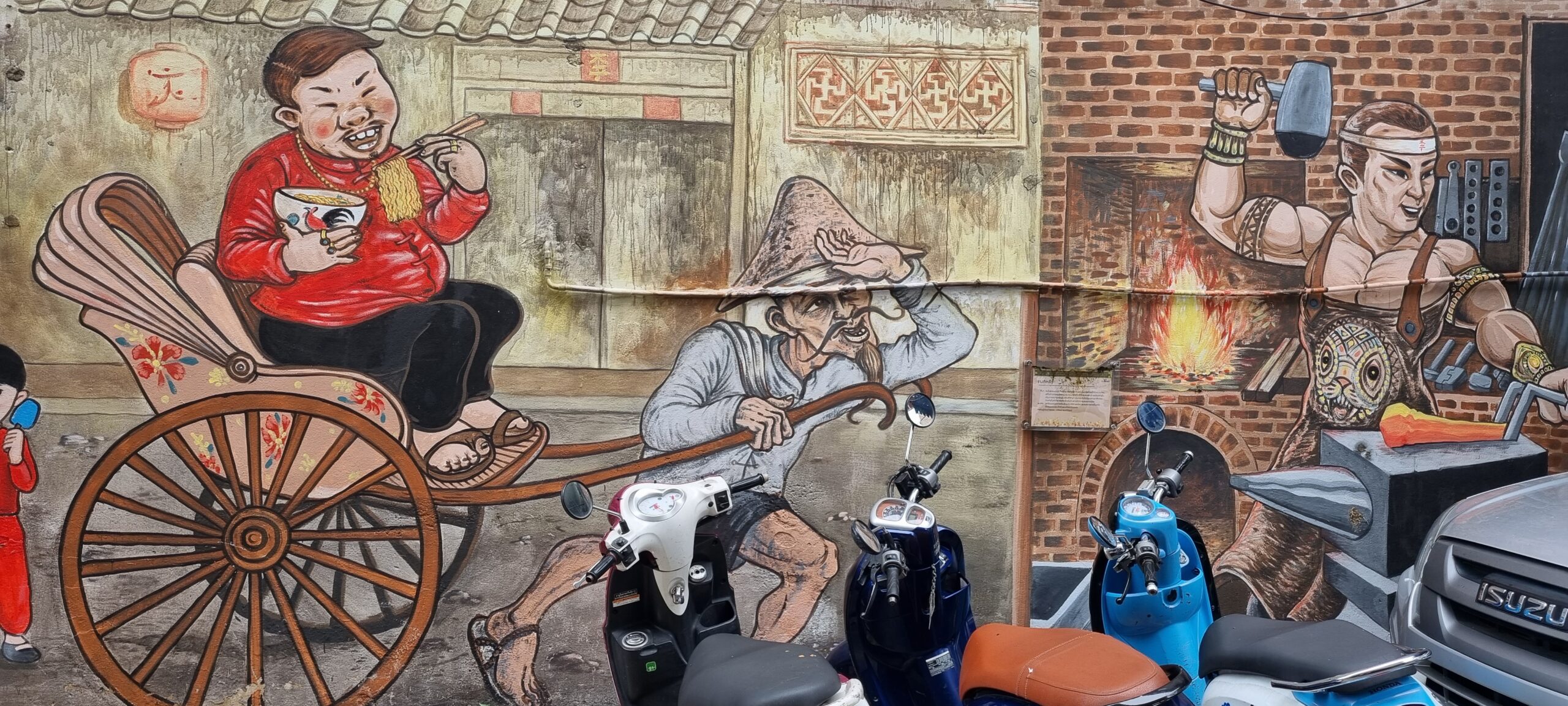 Оттам започна бавното тътрене по улицата, т.е. по шосето, тъй като тесните тротоари са заети от улични търговци и места за храна, съответно се налага внимателно разминаване с всички останали туристи, твърде много от които ядяха паниран сладолед – или пък пържен скорпион – на клечка.