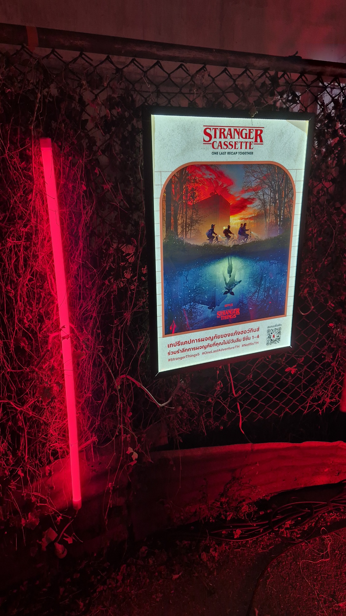 От 20 до 28 декември Netflix зарадва жителите и посетителите на Банкок с арт инсталацията „Едно последно приключение“, която промотира финала на хитовия сериал „Странни неща“ (втората половина от пети сезон трябва да излезе всеки момент). Мероприятието е на улица „Сонг уат“ в китайския квартал, където седем локации са превърнати в декор на различни сцени от петте сезона, поместени са реквизити и е създадена възможност посетителите да се почувстват и снимат като героите от Stranger Things.