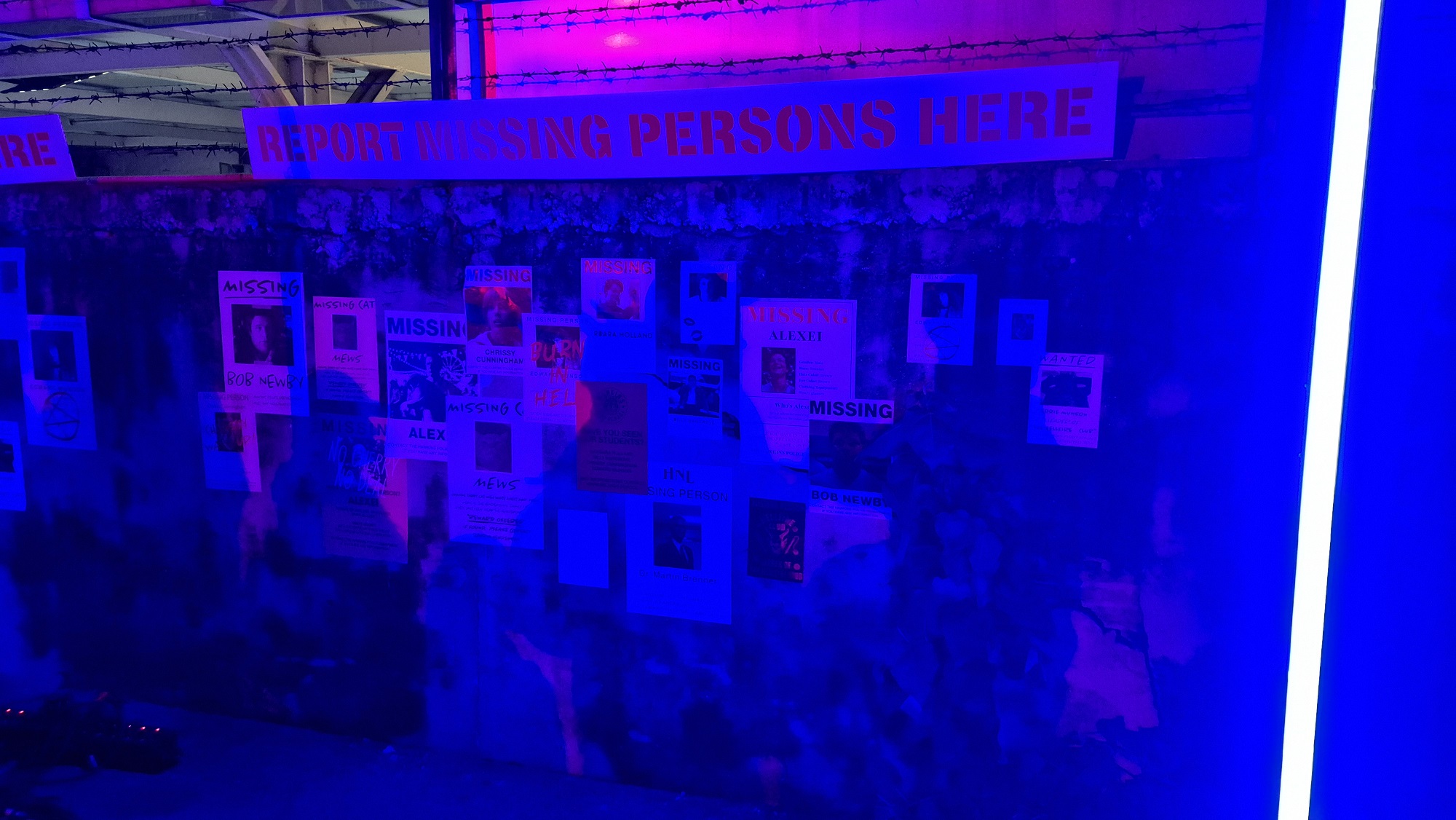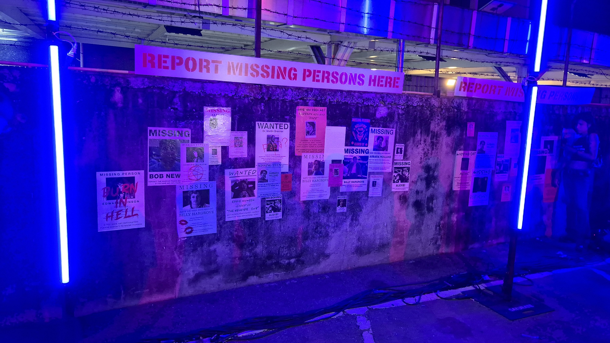 Втората точка е складът Чарън Уатана – бивш търговски склад, сега изложбена зала – който беше преобразен като „замъка“ на Уил Байърс и дома на майка му със светещите букви от първи сезон. За съжаление, там имаше огромна опашка от желаещи да влязат, а на мен не ми се чакаше. Забелязах и друго обаче: всички на опашката държаха нещо като разгъната брошура, на която са означени различните точки на инсталацията и я даваха на служителите на входа да им я подпечатат – като книжката със стоте национални туристически обекта. Попитах служителка от къде мога да си взема и аз, и тя ми каза, че това са билети за събитието. Безплатни са, но са свършили за този ден. Каза ми да дойда друг ден, отварят в 16 ч. и дават по 500 билета за или от 17 до 19 ч., или от 19 до 21 ч. Оказа се, че без билет не може да се влезе в три от локациите. Снимах каквото можах от улицата, сред тълпата от други фенове, на които не им се чакаше, както и любопитни минувачи, и продължих нататък.