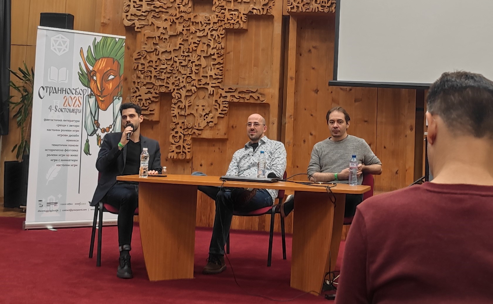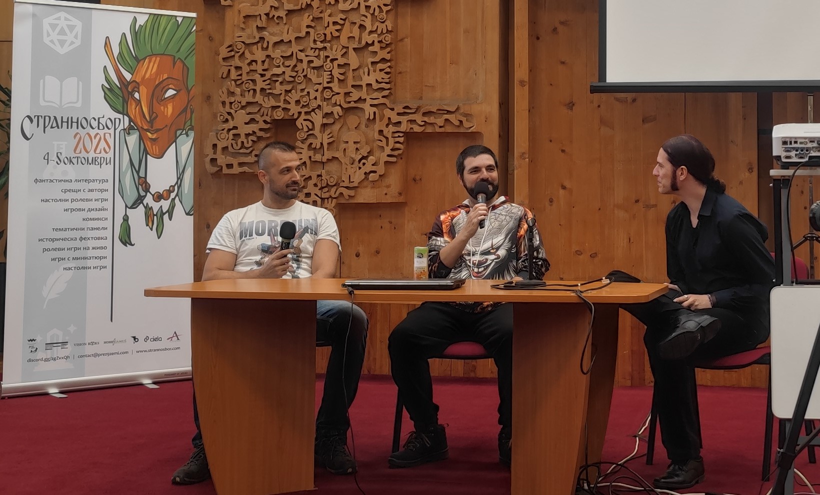 Направи ми впечатление, че имаше голям интерес към тях не само от българските им почитатели, а и такъв от чужденци. Английска реч се чуваше през цялото време, което ми даде сигнал за потенциала на Странносбор да привлече както още чужденци – почитатели на настолните игри, така и чужди читатели и писатели. За самите игри няма да коментирам подробно, защото съм невеж в тях и предпочитам да блесна със знанията си, а не с липсата на такива.