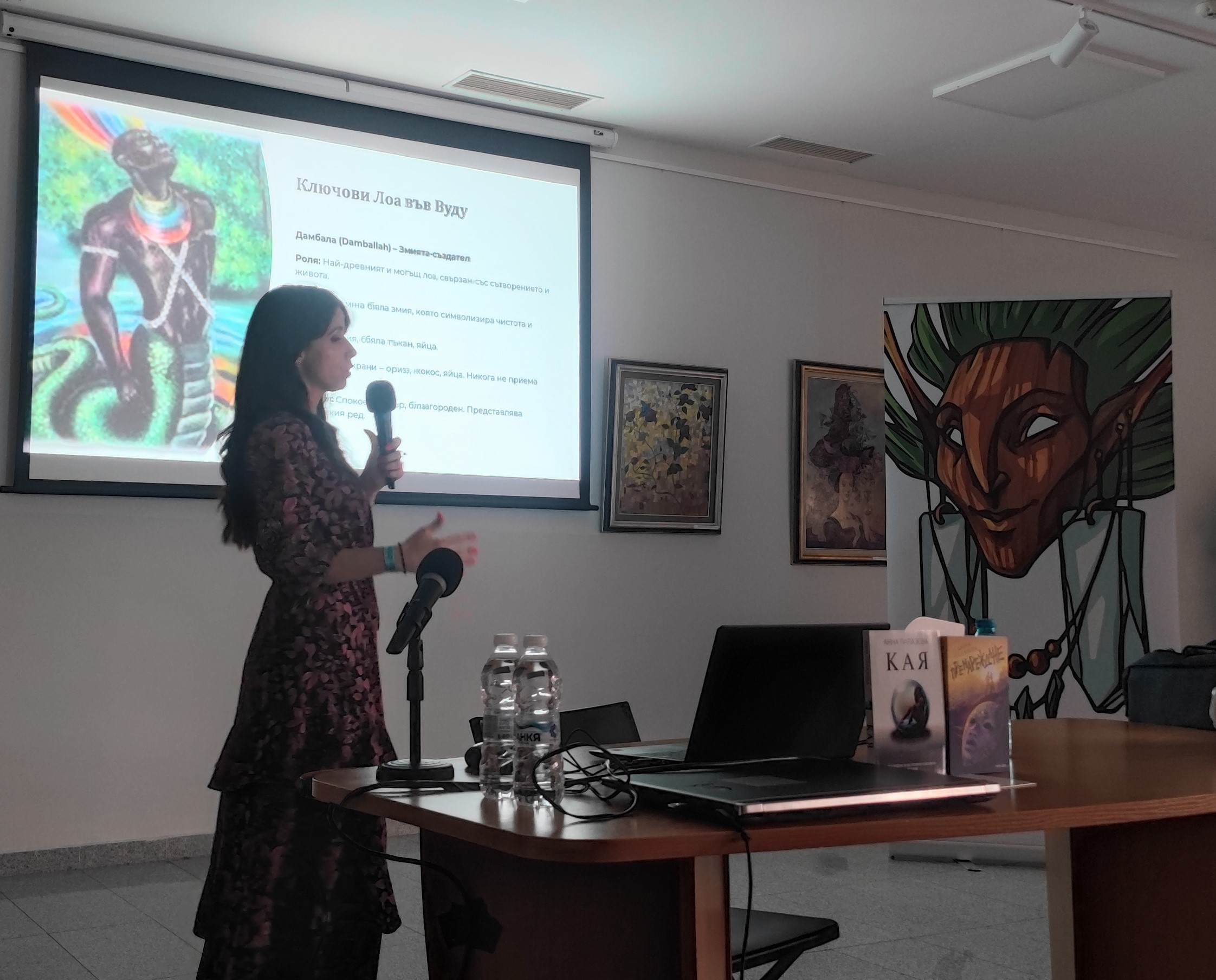 Друга интересна дискусия от програмата на фестивала беше тази на Анна Палазова за вуду магия и религия. Тя ни убеди, че страхът от вудуто се базира по-скоро на невежеството по тази тема. Авторката направи множество аналогии между вудуто и широко разпространените религии по нашите земи, с което ги събра под общ знаменател. Примери няма да давам, защото искам да Ви стане любопитно и сами да потърсите информация за това, вместо да останете с лъжливата представа за вуду от касовите холивудски продукции. Точно това беше и едно от основните послания на г-жа Палазова.